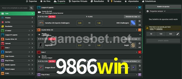 O 9866win oferece uma grande seleção de opções de apostas em e-sports com probabilidades competitivas